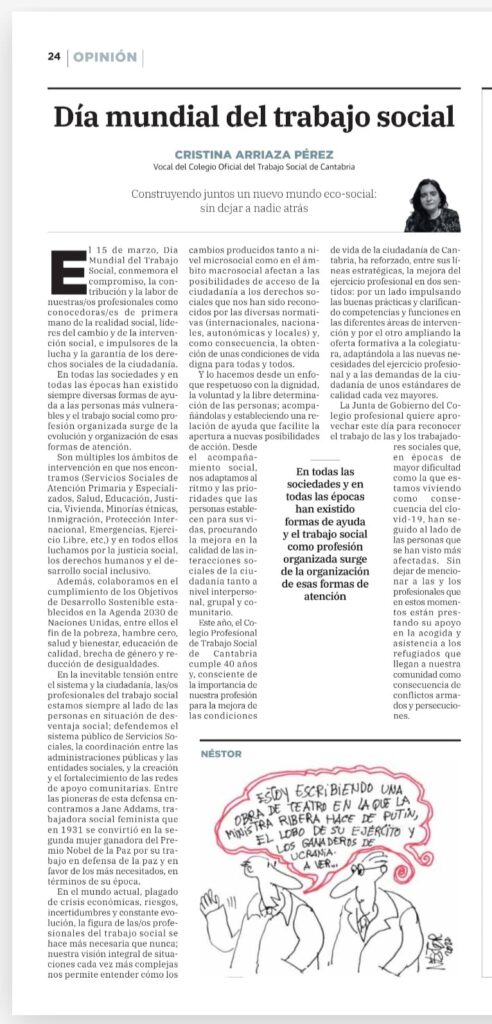 El COTS de Cantabria celebra el próximo día 18 de marzo el Día Mundial del Trabajo Social en el Parlamento de Cantabria